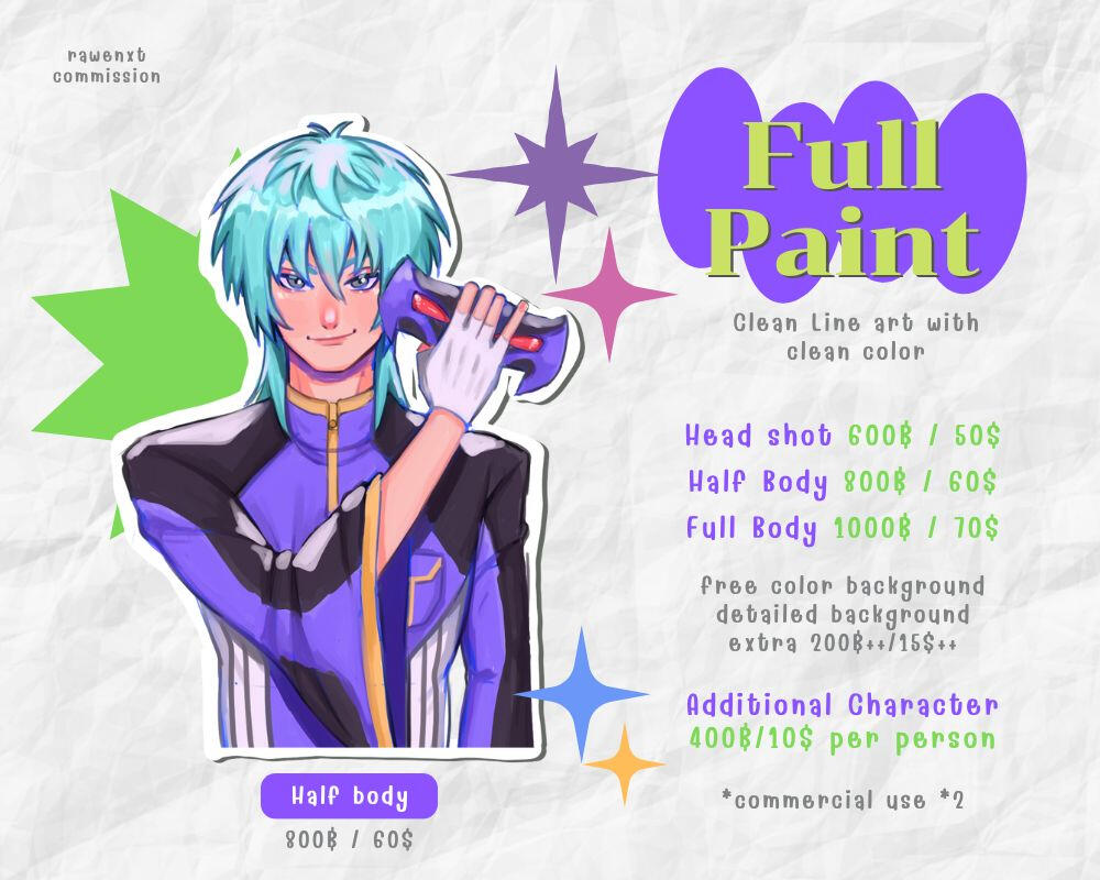 การสั่งเชิงพาณิชย์ราคา x2 และต้องระบุว่านำไปใช้ทำอะไร (เช่นปกนิยาย พวงกุญแจ หรืออื่นๆ) โดยลิขสิทธิ์ทั้งหมดยังคงเป็นของเรา ไม่อนุญาตทำซ้ำหรือดัดแปลง และถือครองสิทธิ์ความเป็นเจ้าของสิทธิ์ขาด